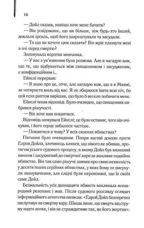 Сержант Малкольм Ейнслі з відділу вбивств поліції Маямі збирався у заслужену відпустку з родиною, але раптовим телефонним дзвінком його викликали на термінове завдання. Злочинець, якому залишилося жити кілька годин, перед стратою на електричному стільці попросив Ейнслі вислухати його сповідь. Прохання не дивне, адже Малкольм колись був священником. Перед смертю маніяк зізнається у всіх злочинах, у яких його підозрювали. Крім одного. Звісно, засуджений міг і збрехати. Однак Ейнслі розуміє, що почув правду. Справжній убивця залишився на свободі. Тож поліція знову береться за справу.
