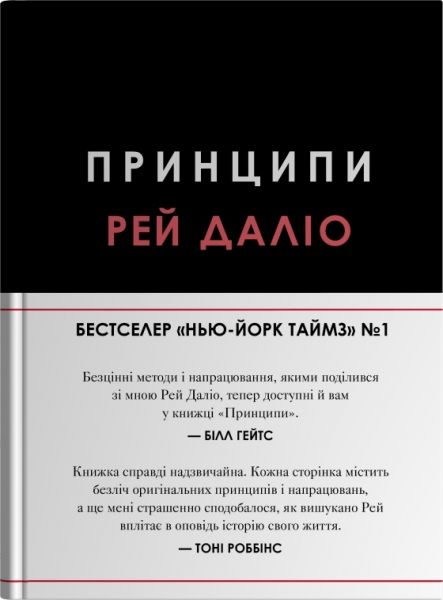 Рей Даліо ділився своїми нетрадиційними принципами, завдяки яким зі звичайного хлопця з лонг-айлендської родини середнього класу перетворився на одного з найспішніших підприємців нашого доби, тож користуватися ними для досягнення власних цілей тепер можна отримати будь-хто. У 1975 році Рей Даліо заснував інвестиційну фірму Bridgewater Associates у своїй двокімнатній квартирі в Нью-Йорку. Сорок років компанія Бріджвотер заробила більше грошей для своїх клієнтів, ніж будь-який інший гедж-фонд в історії, і сталася тому, що пяти найвпливовіших приватних компаній у США (за даними журналу Fortune). Сам Даліо увійшов до списку 100 найбільших людей у ??світі. На своєму шляху до процвітання Даліо визначальний набір унікальних принципів, які привели його до цілком ефективної культури компанії Bridgewater, яку він описує як ідею меритократії, яка прагне досягти значних успіхів у роботі і змістовних відносинах через радикальну прозорість. Особливо це стосується самого Даліо, який є його звичним хлопцем у районі Лонг-Айленда в родині середнього класу, що, як він вважає, є причиною успіху. У Принципах Даліо ділиться своїми знаннями та стверджує, що життя, управління, економіка та інвестування можуть бути систематизовані в певних автоматизованих правилах. Сотні практичних уроків, описаних у книзі, побудовані навколо основних принципів автора - радикальної істини і радикальної прозорості. Серед принципів Далі можна знайти найефективніші уроки для окремих осіб та цілих організацій для прийняття правильних рішень, долати будь-які виклики і будувати сильні команди. Автор також описує інноваційні інструменти, які фірма використовує для впровадження ідеї меритократії в життя. Принципи Даліо недостатньо чіткий, простий підхід до прийняття рішень, які, як вважає автор, можуть використовувати кожен, незалежно від того, що поставлено мета. Принципи Даліо - це рідкісна можливість отримання порад в одній книзі, на виплаті від усього, що ви знайдете в звичайному бізнесі.