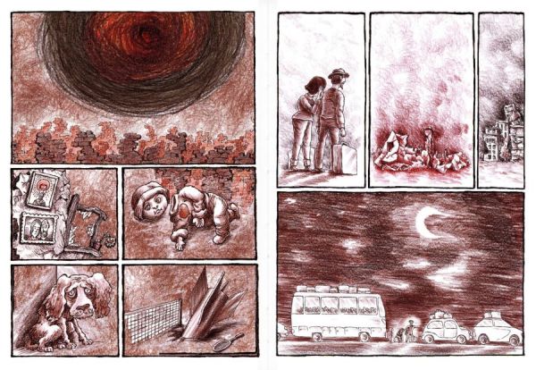 Це роман без слів про біженців. Чи можна передати словами змішані почуття, тугу, біль, невимовний смуток, крики душі, волаючу несправедливість світу? Бути вимушеним біженцем зі своєї країни це гірка доля. Можна вирішити залишитися на чужині та намагатися виживати. Можна робити все можливе, щоб повернутися. Можна спробувати побудувати нове життя, можна виживати серед собі подібних. Але в будь-якому разі біженець у глибині душі постійно почувається пасажиром, який притулився у кутку на незнайомому галасливому вокзалі. Поруч із ним валіза, в якій зібрані найдорожчі та необхідні для душі речі, нагадування про минуле життя. І ніби чекаєш на поїзд. Але зовсім не знаєш, коли він прийде, це від тебе не залежить. Не знаєш, в який бік вирушить цей міфічний поїзд, і чи поїде. Втім, ні. Ти можеш пришвидшити прибуття твого поїзда. Ти можеш щодня робити все можливе і навіть неможливе, щоб твій поїзд обовязково привіз тебе до рідного дому. Туди, де на тебе чекають рідні люди. Володимир Казаневський
