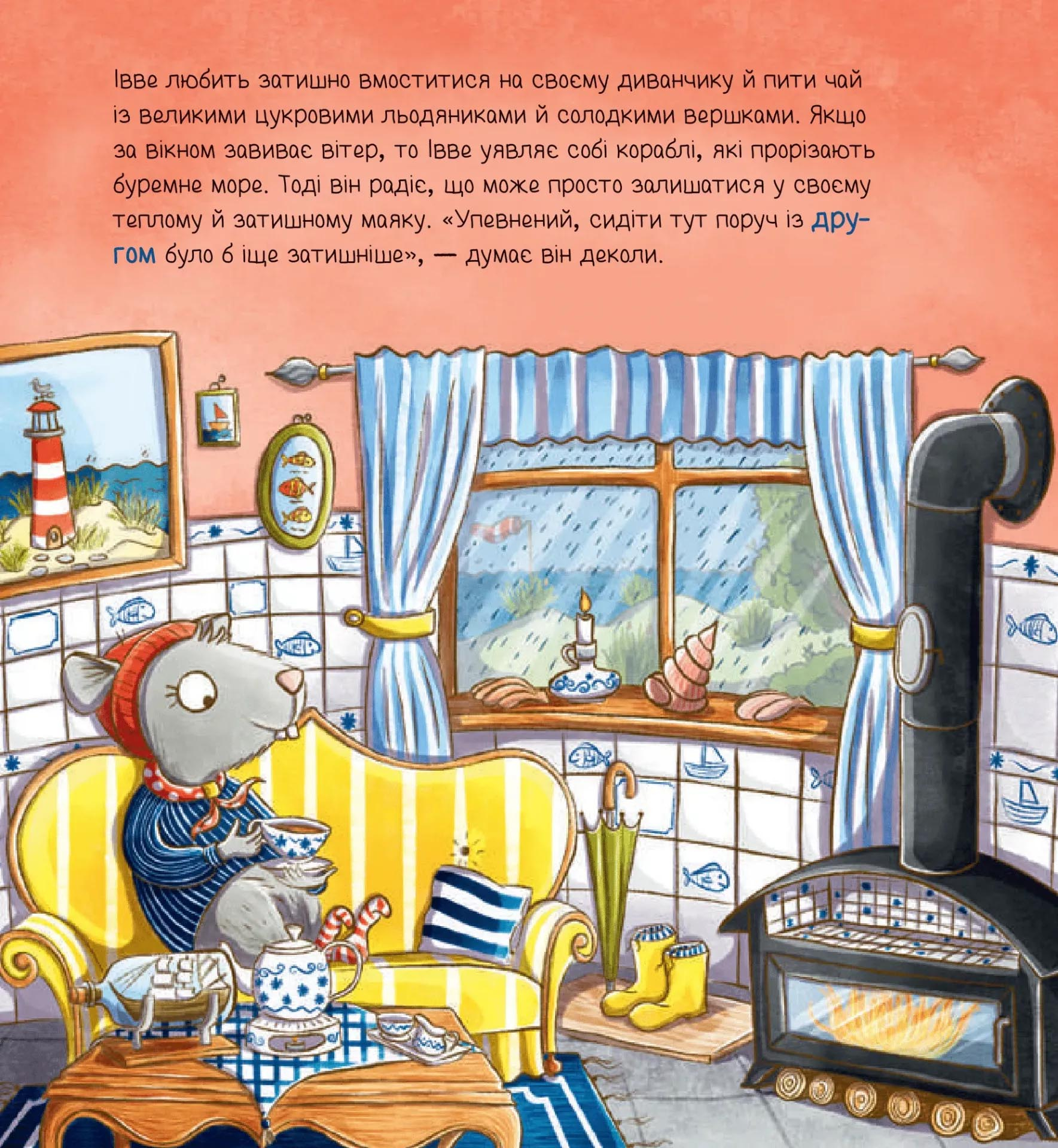Книжка Івве та Курт. Двоє друзів і море авторки Крістіни Шармахер-Шрайбер — це щира, добра та прониклива розповідь, що чудово підходить для читання дітям. Ця книга розповідає про дивовижну дружбу щуреняти Івве та кроленяти Курта, які мешкають на різних островах посеред Північного моря.