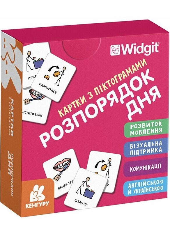 Картки з піктограмами: Розпорядок дня — це візуальна підтримка, яка допомагає дітям краще сприймати інформацію, адаптуватися до щоденних завдань і засвоювати нові поняття. Вони розроблені на основі символів Widgit, що забезпечує зрозумілу та уніфіковану подачу дій, предметів і процесів у звичному розпорядку дня.