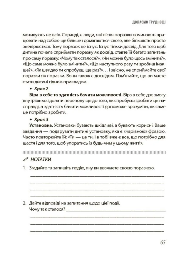 У кожному розділі наведено практичні ситуації, поради психологині, завдання для аналізу та місце для ведення нотаток. Це дозволяє працювати над собою разом із дитиною, розуміти її внутрішній світ та потреби.
