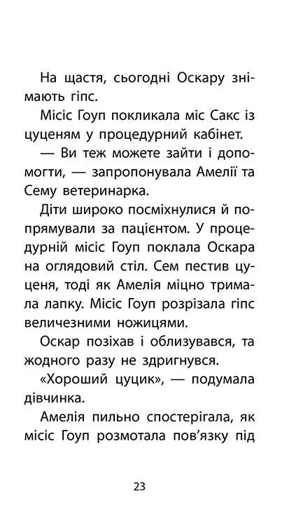 Вчителька драматичного гуртка Амелії та Сема привозить до ветеринарної лікарні «Ковчег» своє щеня із гіпсовою пов’язкою на лапці. Ветеринари знімають гіпс, однак Оскар не стає на лапку. Виявляється йому потрібна тривала реабілітація. У міс Сакс обмаль часу, адже в школі саме йде підготовка до вистави «Чарівник з країни Оз», у якій Амелія отримала головну роль. Чи вистачить дівчинці часу, щоб знайти спосіб допомогти крихітному тер’єрчику?
