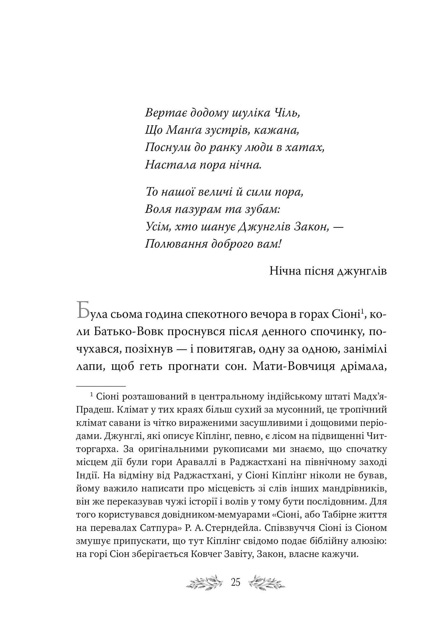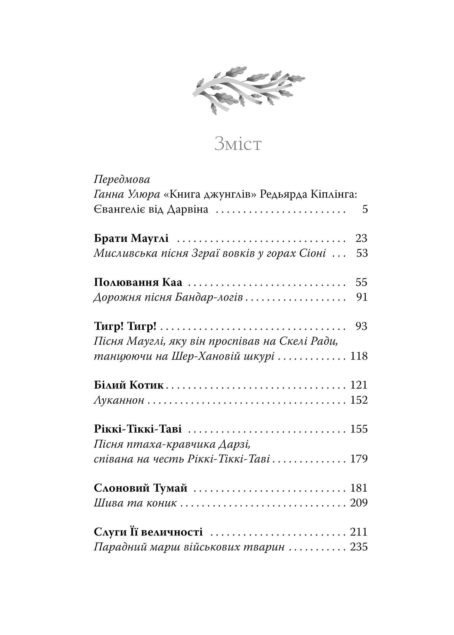 Коли ми чуємо назву «Книга джунглів», наша пам’ять вмить послужливо відтворює історію Мауглі — хлопчика, вихованого вовками. Але «Книга джунглів» — це не лише про нього. Вона також про морського Білого Котика, який шукає нових земель, щоб врятувати родичів. Про те, як потрапляють у рабство і яких зусиль вартує наступним генераціям з того рабства звільнитися. Про подвиг відважного мангуста Ріккі-Тіккі-Таві. Про людей серед звірів і про тварин серед людей. Про те, як формується вірність законам племені, готовність діяти, прагнення служити високим цілям.