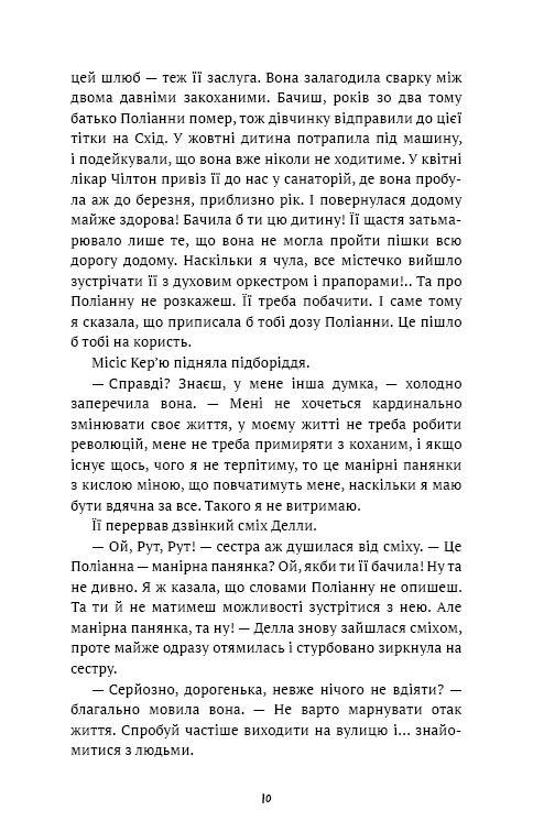 Поліанна повертається! Вона виросла, але так само залишилася сонячною дівчинкою з невичерпним джерелом оптимізму й радості у своєму серці. І нехай тепер їй доводиться часом вирішувати недитячі проблеми, Поліанна знаходить нових друзів і далі вірить, що все буде добре. Продовження знаменитого класичного роману американської письменниці Елеонор Портер про дівчинку Поліанну, яка навчила увесь світ чудовій грі в радість. Рекомендовано для додаткового читання.