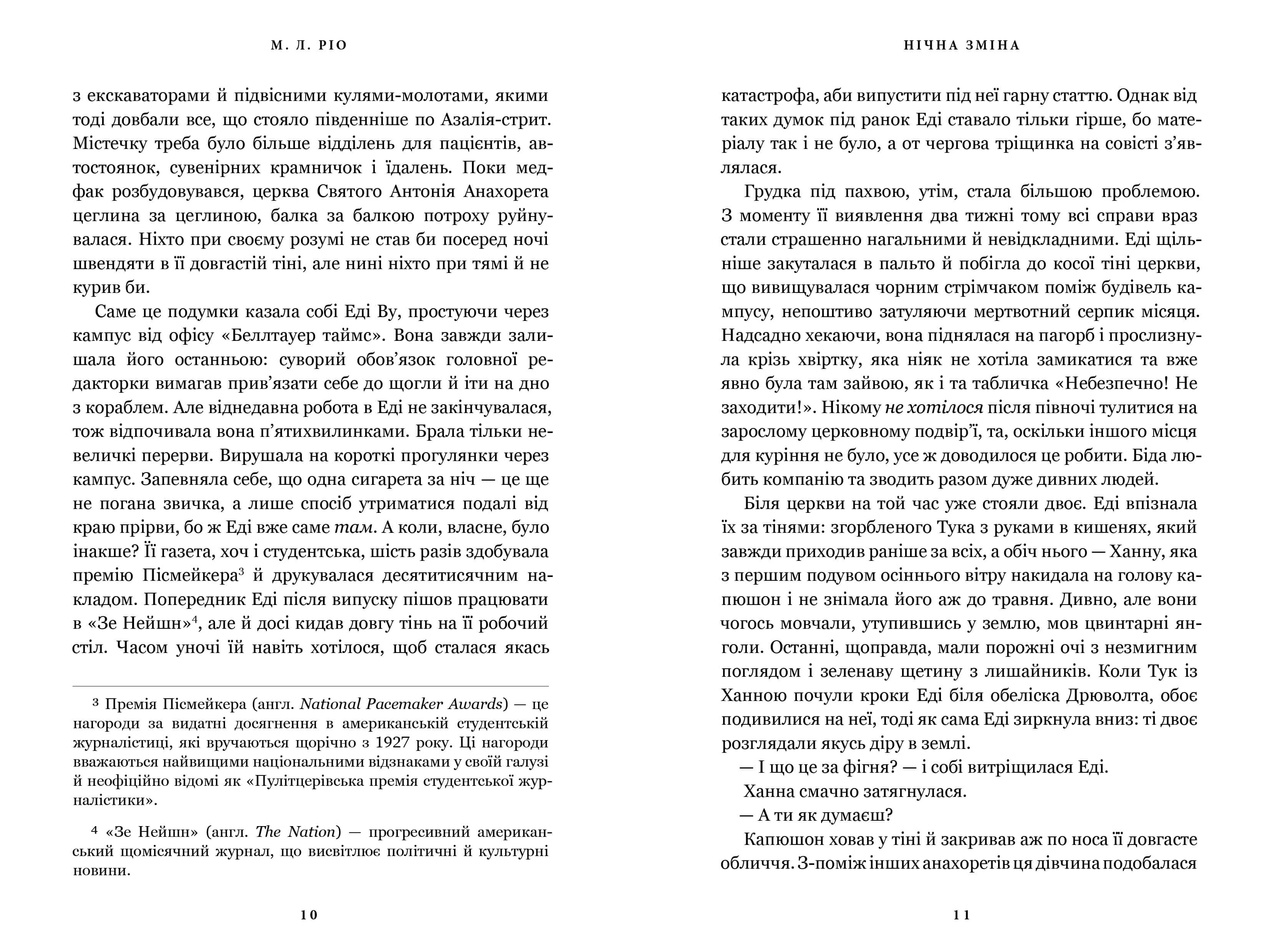 Нічна зміна — новий твір М. Л. Ріо, авторки відомого бестселера Ніби ми злодії. Видання 2025 року вже встигло привернути увагу читачів як один з найочікуваніших бестселерів сучасної готичної прози. Роман поєднує атмосферу моторошного трилера, детективні елементи та естетику академічної драми.