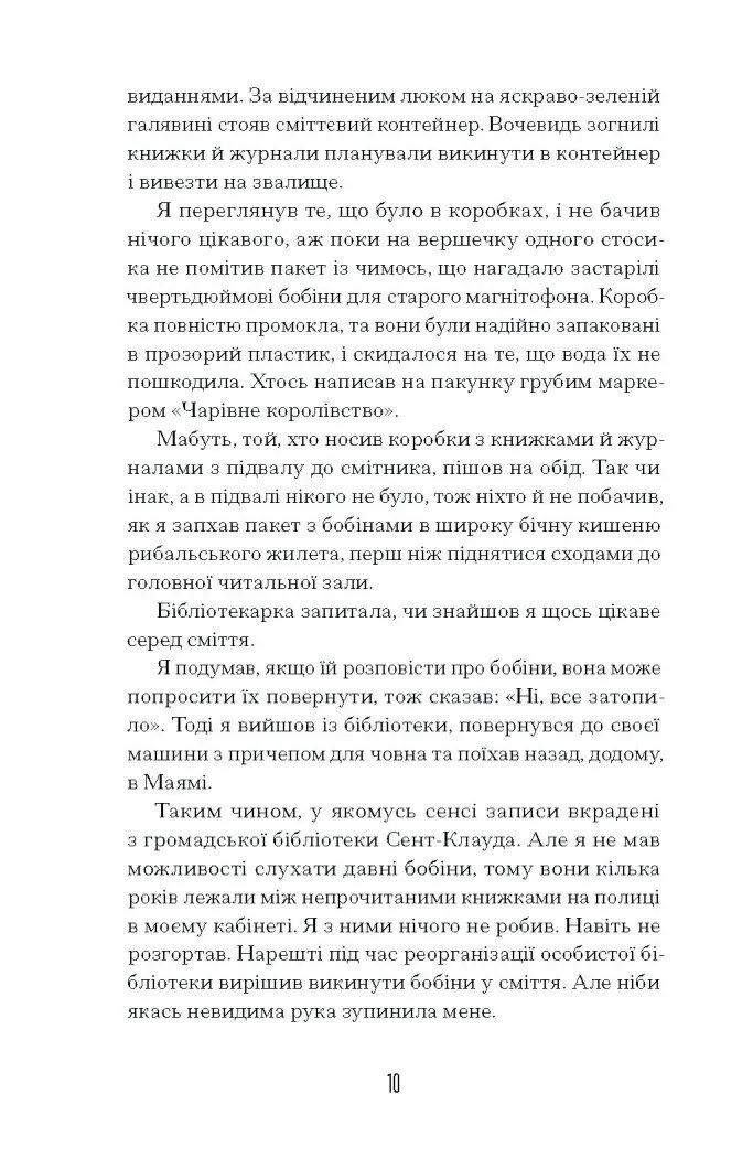 Книга Чарівне королівство від — це глибока історія, що розкриває особисту драму на тлі змін у США середини ХХ століття. Роман починається у 1971 році, коли вже літній Гарлі Манн, спекулянт нерухомістю, вирішує записати свідчення свого життя.