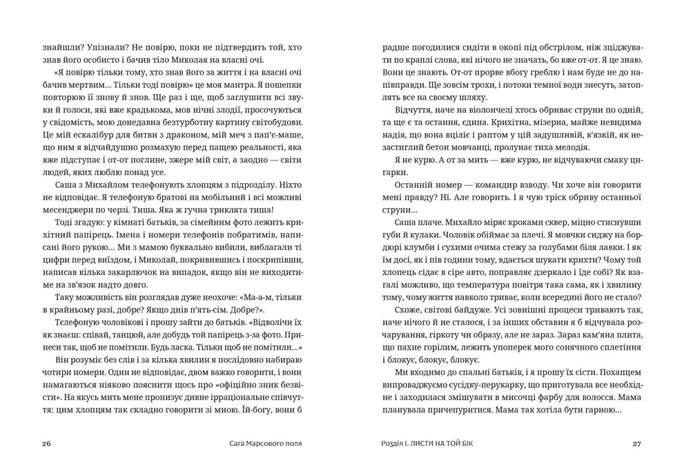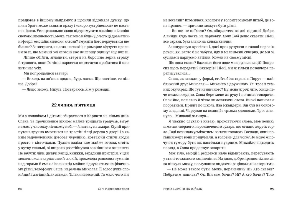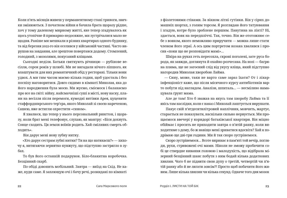 Сага Марсового поля — це зворушлива і щира книга авторки Вероніки Карачевської, яка розповідає про особисту втрату, біль та незламну силу людського серця. Виходячи з власного досвіду, письменниця ділиться історіями людей, які втратили близьких через війну. Але ця книга не лише про втрату — вона про віру, відновлення, любов і духовну міць.
