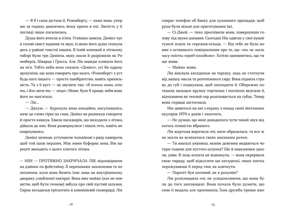 Дебютний роман Рейчел Рунья Катц Дякую, що поділилася — це емоційна історія, що з перших сторінок занурює нас у світ двох давно знайомих людей. Деніел Розенберґ і Лія Коен-Джексон востаннє спілкувались у літньому таборі чотирнадцять років тому. Їхня суперечка поклала кінець дружбі, однак випадкова зустріч у літаку приносить несподіване продовження.