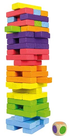 Настільна Вежа-балансир (Дженга) кольорова з кубиком
