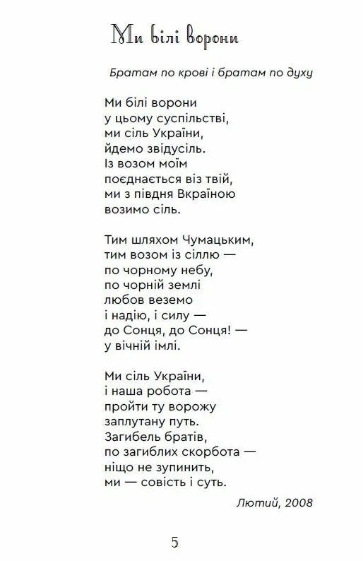 Ця книга — для тих, кого хвилює доля України, хто не байдужий до її майбутнього. Вона стане справжньою знахідкою для шанувальників сучасної української поезії, поціновувачів слова, що змінює та надихає.