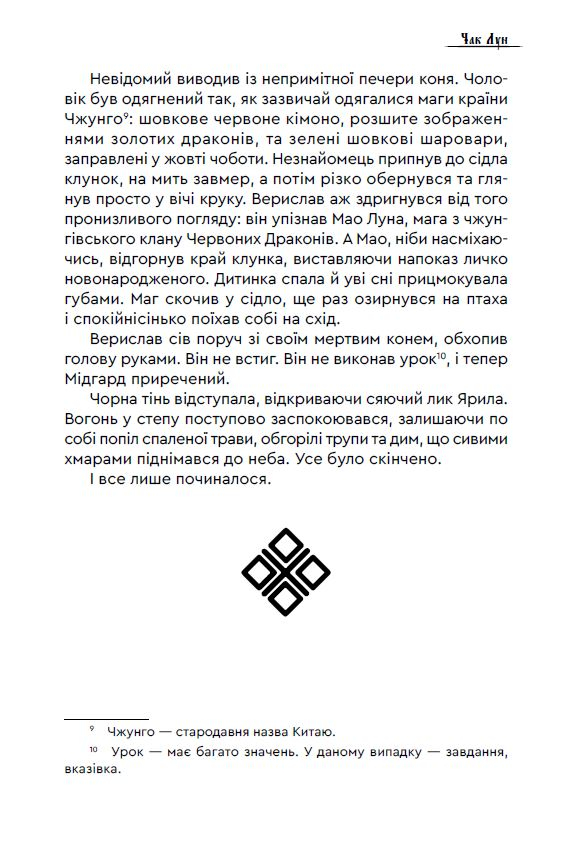 Книга чудово підійде для поціновувачів епічного фентезі, фанатів альтернативних світів, міфологічних артефактів та інтригуючих сюжетів. Якщо вам до вподоби твори з героїчним шляхом головного персонажа, сповненим духовного і фізичного випробування — Чак Лун неодмінно вразить.