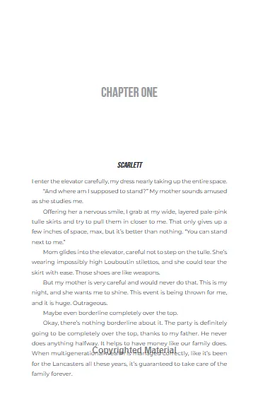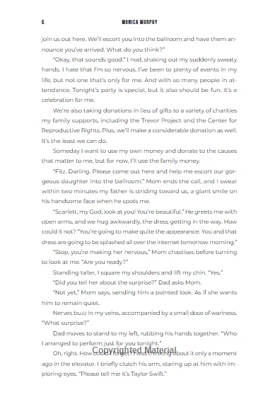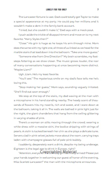 The main heroine of the novel is young heiress Scarlett Lancaster. Her birthday promises to be unforgettable, as her father hires a famous pop singer to perform at her party. Unfortunately, it’s not Harry Styles, but Tate Ramsey—the former frontman of a long-forgotten boy band, recently returned from years of fame, wild living, and rehab.