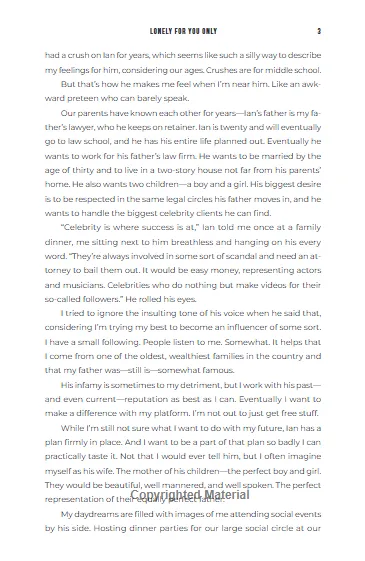 Книга Lonely For You Only авторства Моніки Мерфі — один із найцікавіших романів 2025 року в жанрі young adult та сучасної романтики. Насичена почуттями, емоціями та блиском зіркової сцени, ця історія захоплює читача з першої сторінки та не відпускає до самого фіналу.