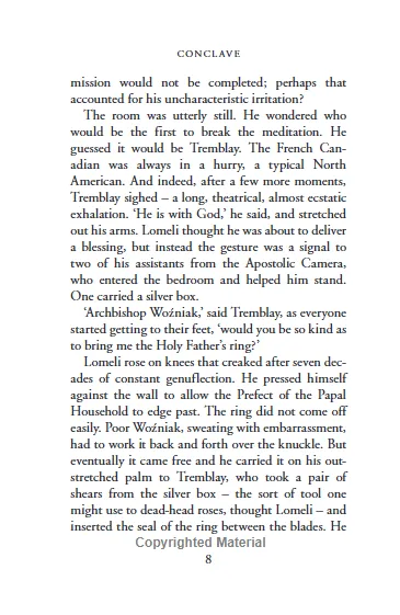 THE POWER OF GOD. THE AMBITION OF MEN.THE SUNDAY TIMES BESTSELLERNOW AN BAFTA AND OSCAR WINNING MOVIE.Behind the locked doors of the Sistine Chapel, 118 cardinals are meeting in conclave to cast their votes in the world's most secretive election.They are holy men. But they are ambitious. And they have rivals. Over the next 72 hours, one of them will become the most powerful spiritual figure on earth. Who will it be?'Unputdownable' Guardian'Gripping' Sunday Times