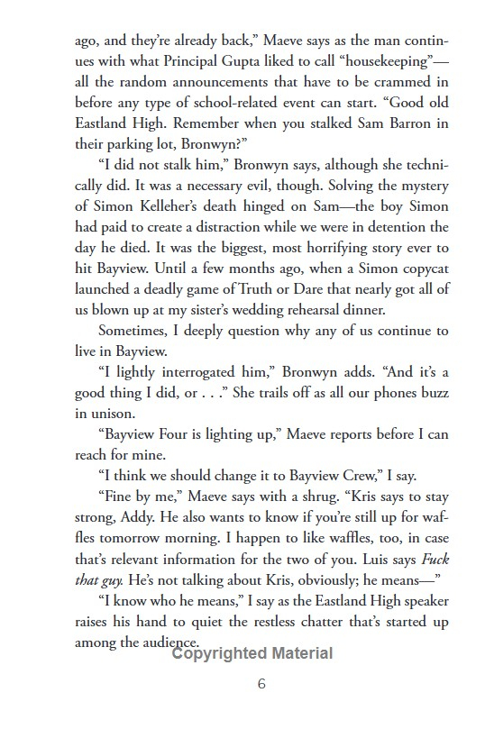 Від міжнародної бестселерки Карен М. МакМанус — вибухове завершення знаменитої трилогії «Один із нас бреше», тепер у новому стильному оформленні: з глибоким чорним тлом обкладинки та пофарбованими зрізами сторінок.