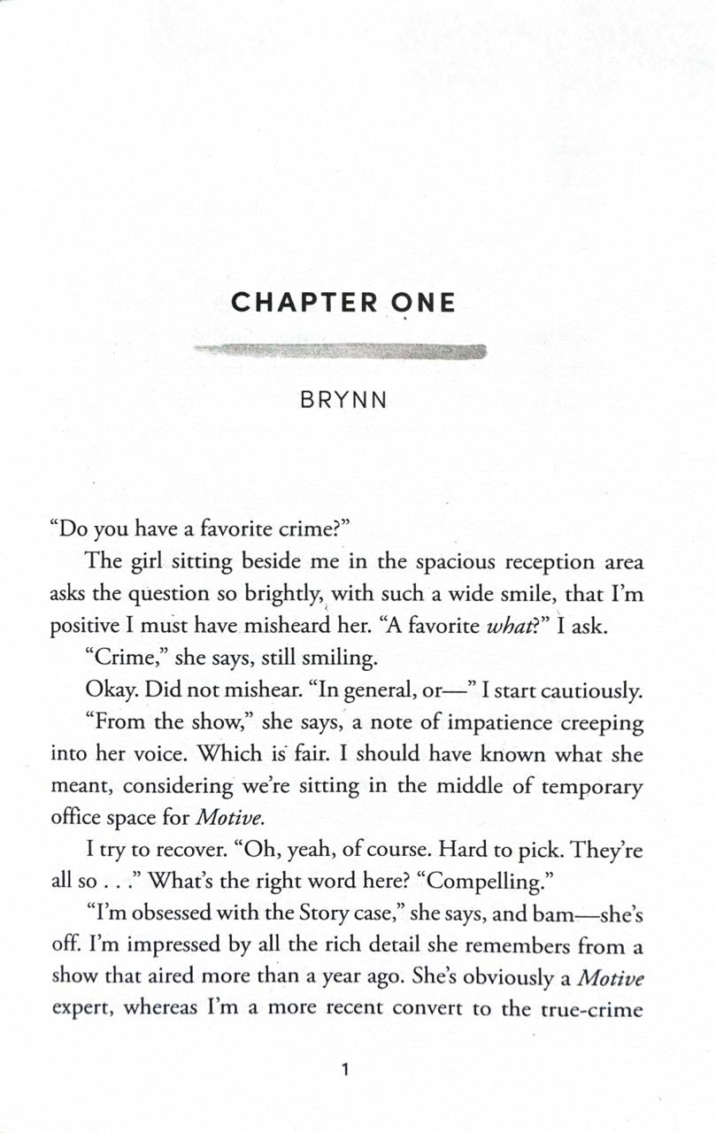 True crime can leave a false trail.Four years ago, Brynn left Saint Ambrose School following the shocking murder of her favourite teacher. The case was never solved, but she's sure that the three kids who found Mr. Larkin's body know more than they're telling, especially her ex-best friend Tripp Talbot. He's definitely hiding something.When Brynn gets an internship working on a popular true-crime show, she decides to investigate what really happened that day in the woods. But the further she dives into the past, the more secrets she finds.Four years ago someone got away with murder. Now it's time to uncover the truth . . .