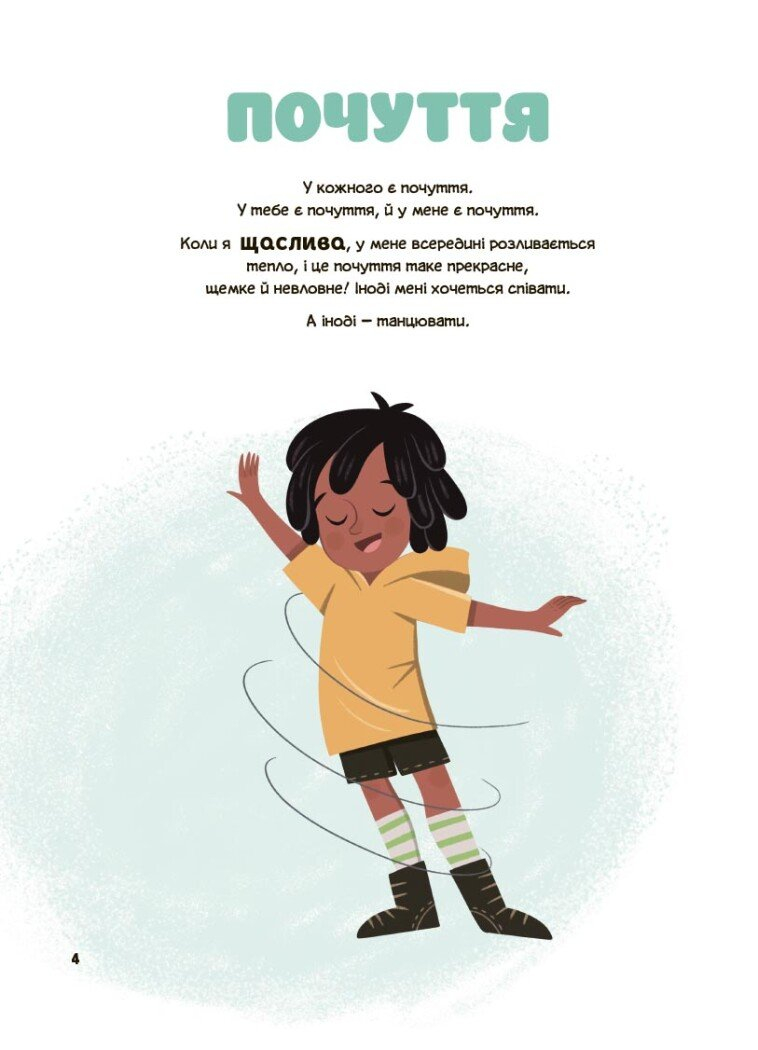 Книга містить практичні запитання для обговорення, які сприяють розвитку самопізнання, емоційної грамотності та побудови довірливих стосунків у сім’ї. Завдяки простій мові та кольоровим ілюстраціям, знання легко сприймаються дітьми.