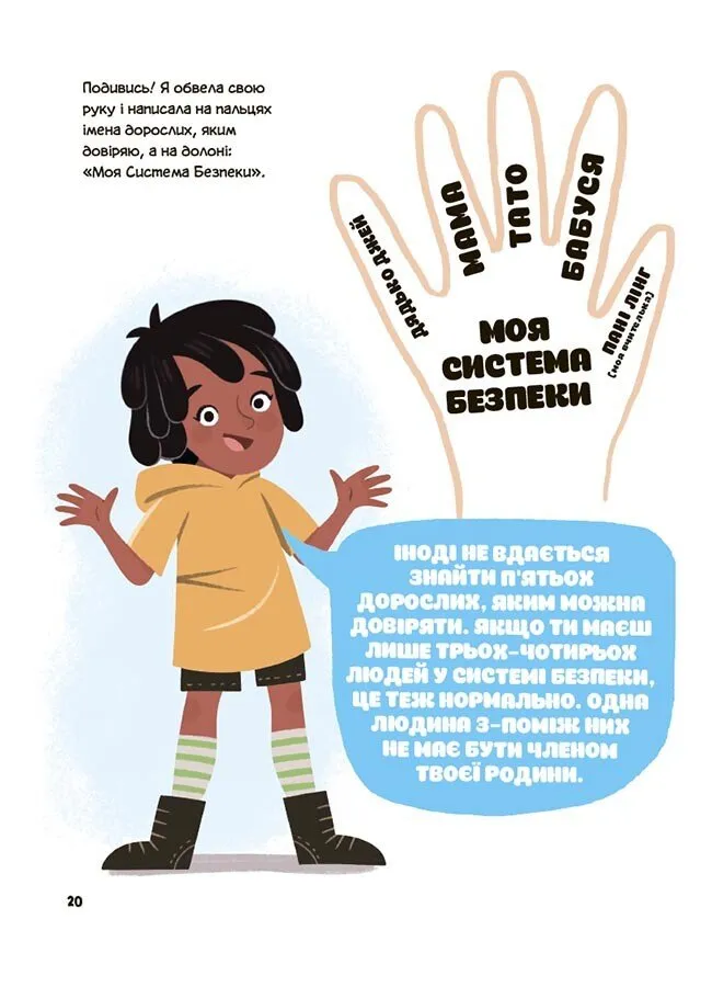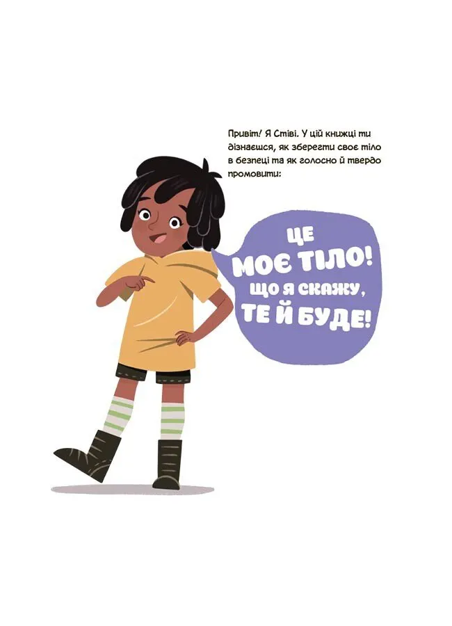 Цей посібник — чудовий вибір, щоби почати з дитиною важливу розмову про захист себе, вміння висловити думку і почуття, довіру до дорослих та усвідомлення особистих прав.