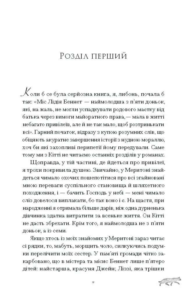 Авторка створила нову реальність, де кицьки — магічні істоти, а звичні персонажі наділені силами, про які ми не здогадувалися. Поступове занурення в магічний світ дає змогу не лише згадати улюблених героїв, а й відкрити їх заново. Чи справді міс Лідія Беннет була легковажною дівчиною — чи її поведінка приховувала щось більше?