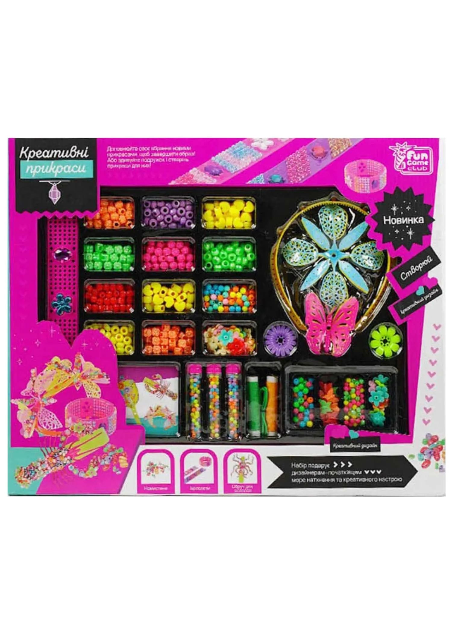 Чудова новинка для шанувальниць рукоділля! “Креативні прикраси” від "4FUN Game Club" - це магічна скарбничка, наповнена намистинами різних форм, кольорів та розмірів, цікавими прикрасами та оригінальними аксесуарами.