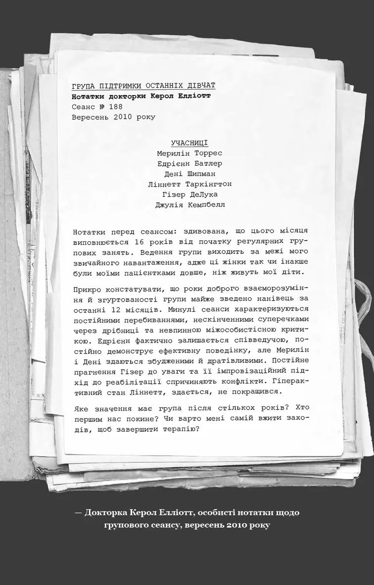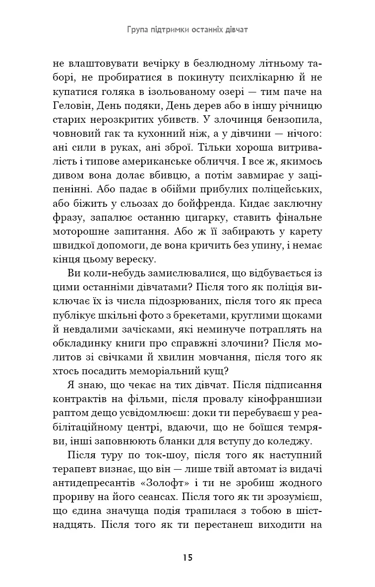 Якщо ви шукаєте напружену історію з глибокими темами та несподіваними поворотами, роман Група підтримки останніх дівчат — саме те, що потрібно. Замовляйте зараз та пориньте в атмосферу справжнього психологічного жаху.