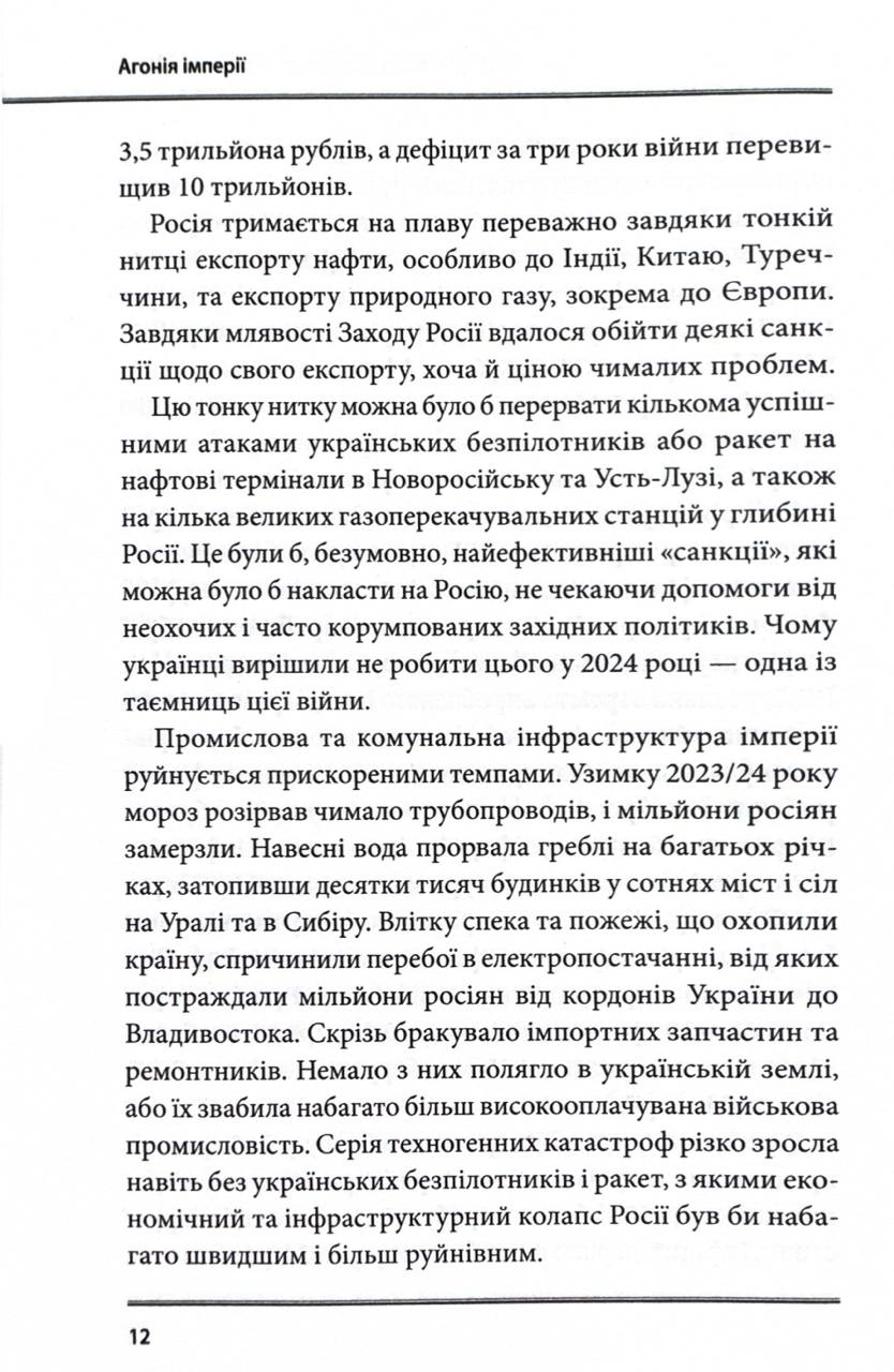 Книга Агонія імперії авторства Юрая Месіка — це глибокий публіцистичний аналіз стану сучасної Росії, її внутрішньої політики та передумов потенційного розпаду. Автор з аналітичною точністю висвітлює ключові аспекти, що загрожують стабільності країни-агресора.
