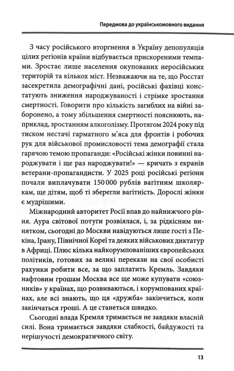Месік прогнозує, що поразка у війні проти України стане каталізатором структурного розпаду, що вже почався. Книга відкриває очі на реальний стан речей і є вагомим джерелом для дослідників, студентів-міжнародників та журналістів.