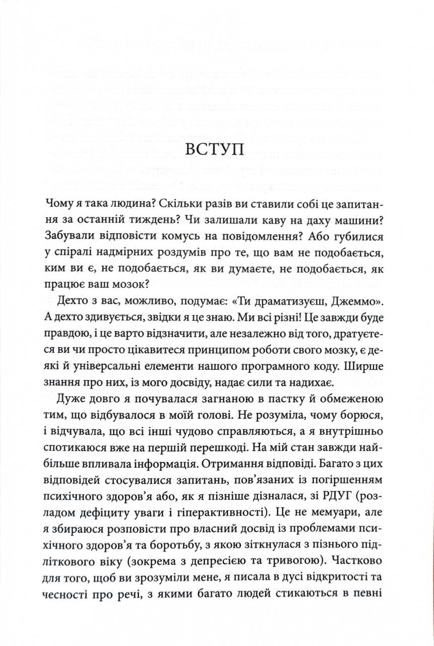 Книга Чому я така людина? Просто мій мозок інший — щира й надихаюча праця британської авторки Джемми Стайлз, відомої своїм подкастом, публічними виступами на тему психічного здоров'я та величезною спільнотою — понад 10 мільйонів підписників в Instagram. Вона розповідає про свої боротьбу й досвід життя з недіагностованим у дитинстві РДУГ, навчає помічати симптоми вигоряння, тривожності, пригніченості та приймати себе.