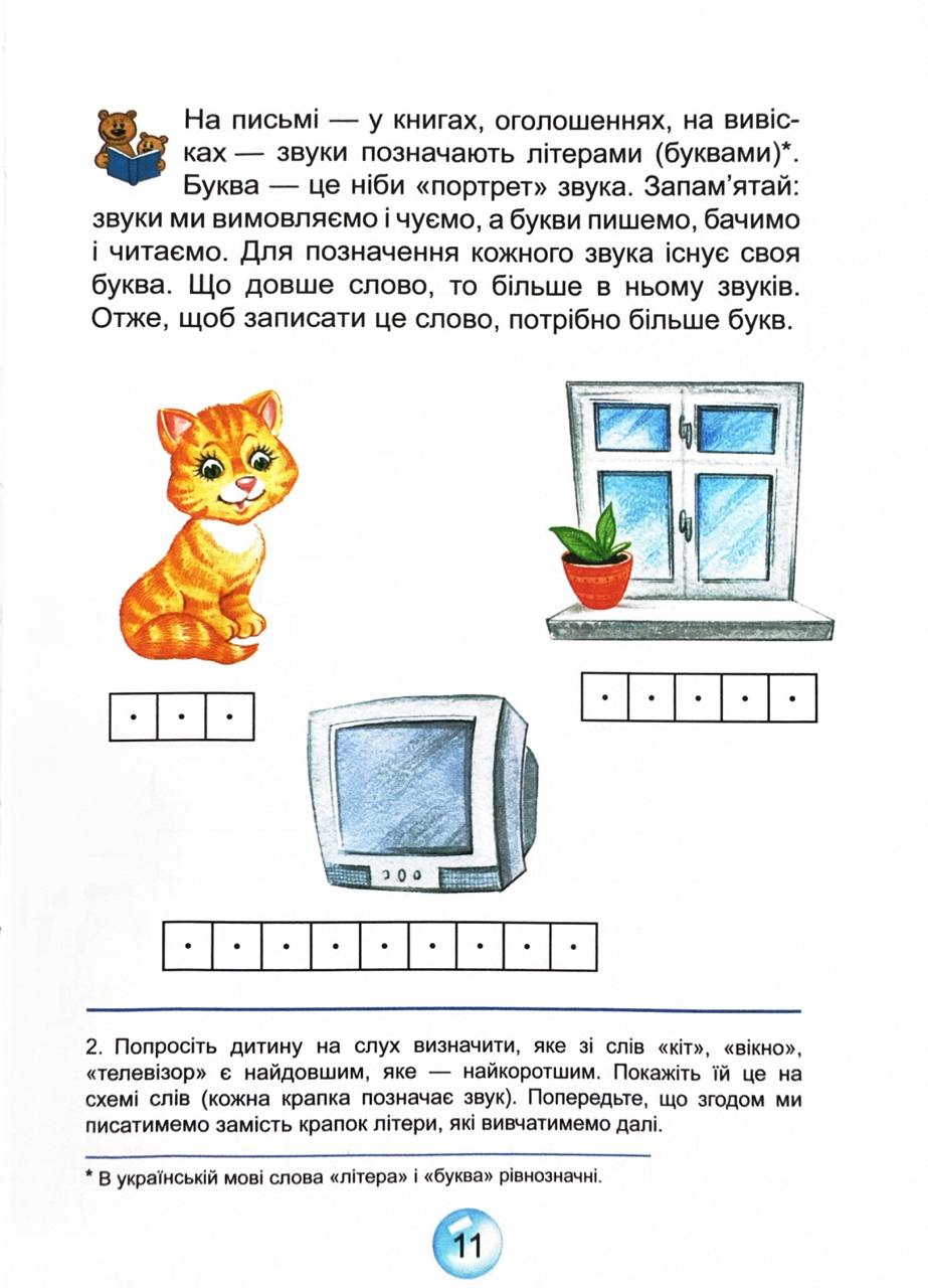 Посібник схвалено до використання у навчально-виховному процесі, що свідчить про його якість і відповідність державним стандартам освіти. Його мета — сформувати в дітей уявлення про такі важливі мовні елементи як: