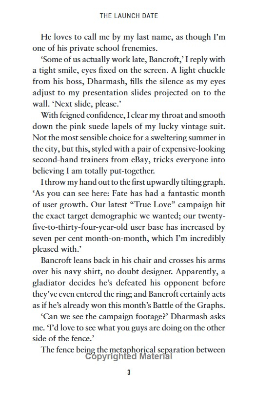 To get her dream job, she’ll have to date her worst nightmare . . .Grace Hastings is in a rut. Her career is stagnating, her boss is a leech, and she feels like a fraud working for Fate, a dating app whose ethos she no longer believes in. And don’t even get her started on the state of her love life.So when the company’s CEO offers her an opportunity for a big promotion and the chance to work on the launch of a dating app that she actually cares about, Grace can’t believe her luck.That is, until she discovers that she must test drive a series of ‘first dates’ with her competition for the job: notorious socialite playboy and Grace’s biggest work rival, Eric Bancroft.But Grace refuses to give up her dream job because of a man. And besides, how romantic can a handful of fake dates with your biggest rival really be?..