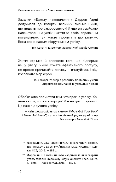 Маленькими повсякденними кроками ви дійдете або до бажаного життя, або до масштабної катастрофи. Даррен Гарді вивів квінтесенцію фундаментальних принципів, які посприяли найфеноменальнішим досягненням у бізнесі, стосунках тощо.