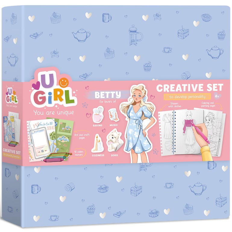 Цей набір підходить для дівчат віком від 5 до 10 років. Яскраві матеріали, зрозумілі завдання та безмежні можливості для малювання роблять його чудовим подарунком на день народження, новий рік або інше свято. Креативний набір Бетті надихає на створення власної моди, стильних картинок та неповторних ідей.