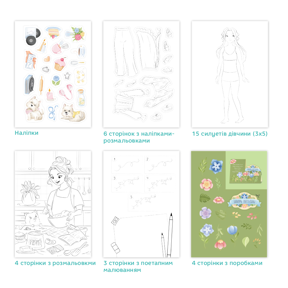 - 6 сторінок оригінальних наклейок та наклейок-розмальовок