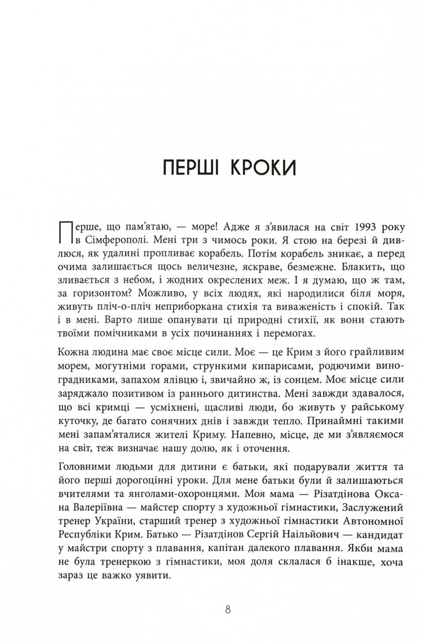 Книга Мій роман зі спортом — це глибока, особиста й мотиваційна історія про шлях до успіху від зірки української художньої гімнастики Анни Різатдінової. Авторка ділиться своїми переживаннями, труднощами та перемогами, запрошуючи читача у світ спорту, де головне не лише перемагати, а й не здаватися.