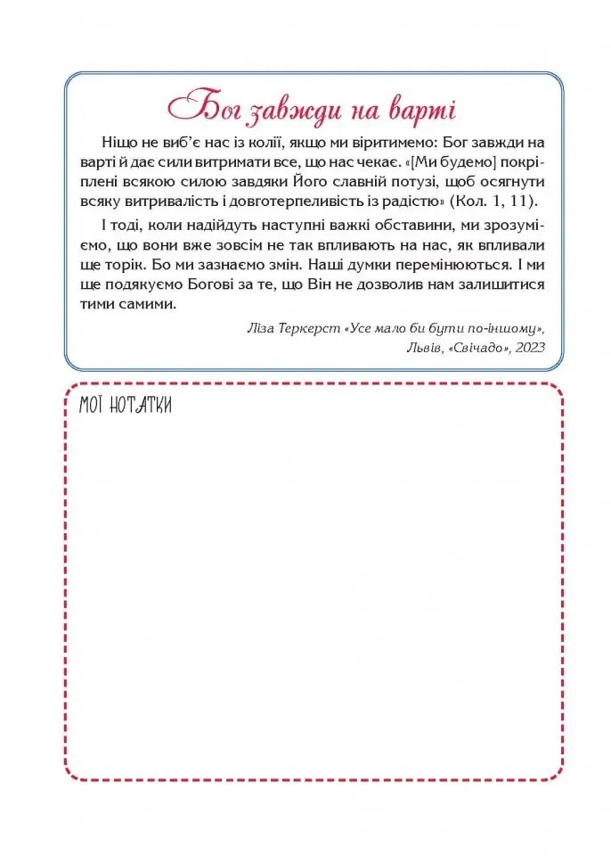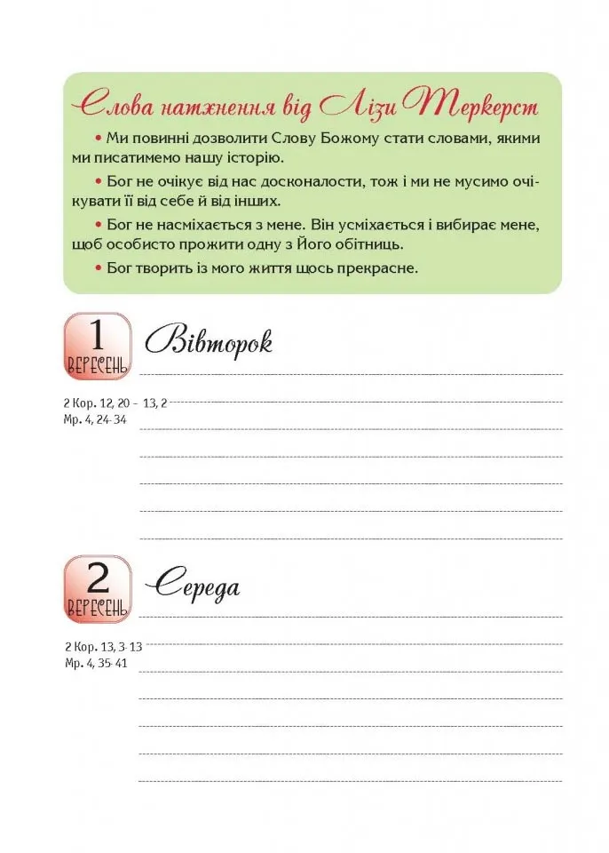 Цього року в календарі з’явилися уривки з книги Енн Воскемп Тисяча дарів, які нагадують про важливість вдячності у повсякденному житті. Вони допомагатимуть жінкам розвивати щоденну практику подяки та з легкістю долати щоденні виклики.