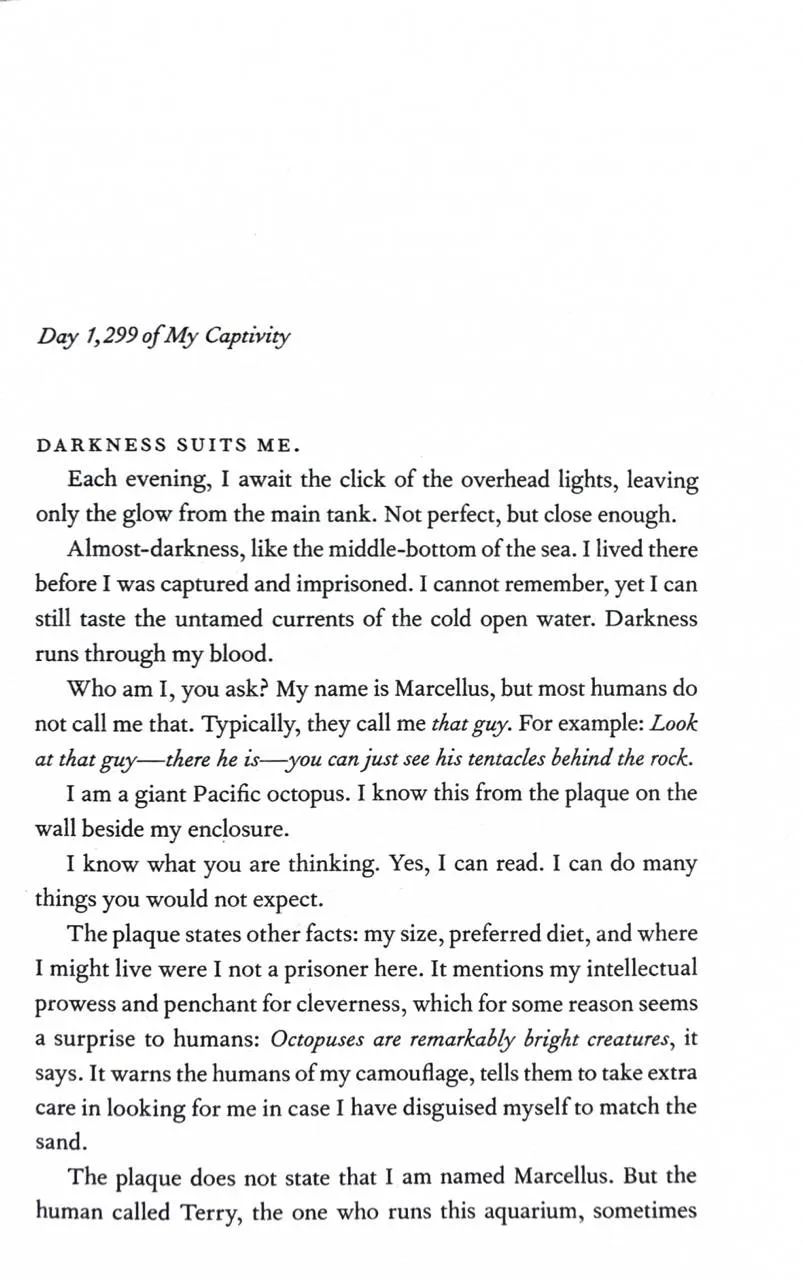 Після смерті чоловіка Това Салліван почала працювати нічною прибиральницею в акваріумі Совелл-Бей. Відтоді як її вісімнадцятирічний син Ерік понад тридцять років тому загадково зник на човні, робота й постійна зайнятість допомагали їй упоратися з болем. Однієї ночі вона знайомиться з Марцеллусом — гігантським тихоокеанським восьминогом, що мешкає в акваріумі. Він бачить усе довкола, але й подумати не міг би підняти один зі своїх восьми щупалець на користь людських наглядачів — аж доки не зав’язує неймовірну дружбу з Товою.