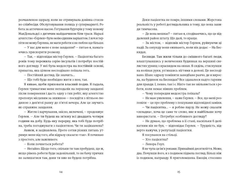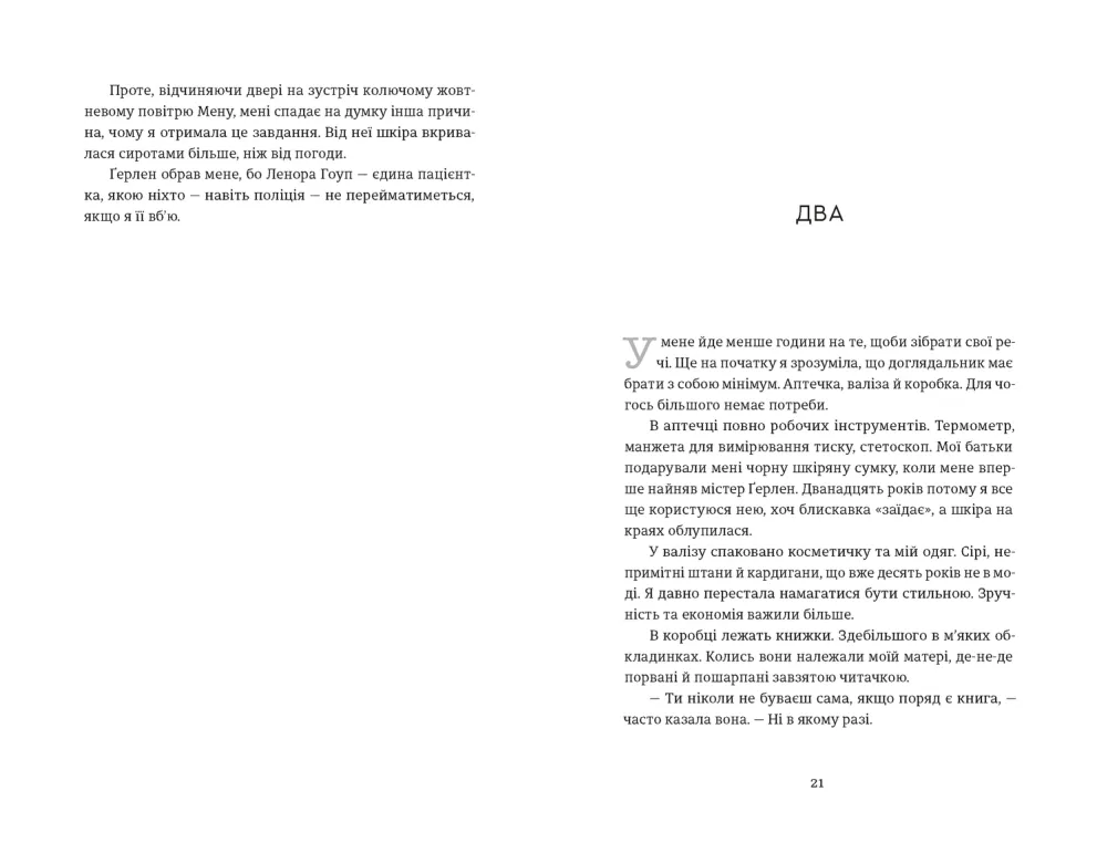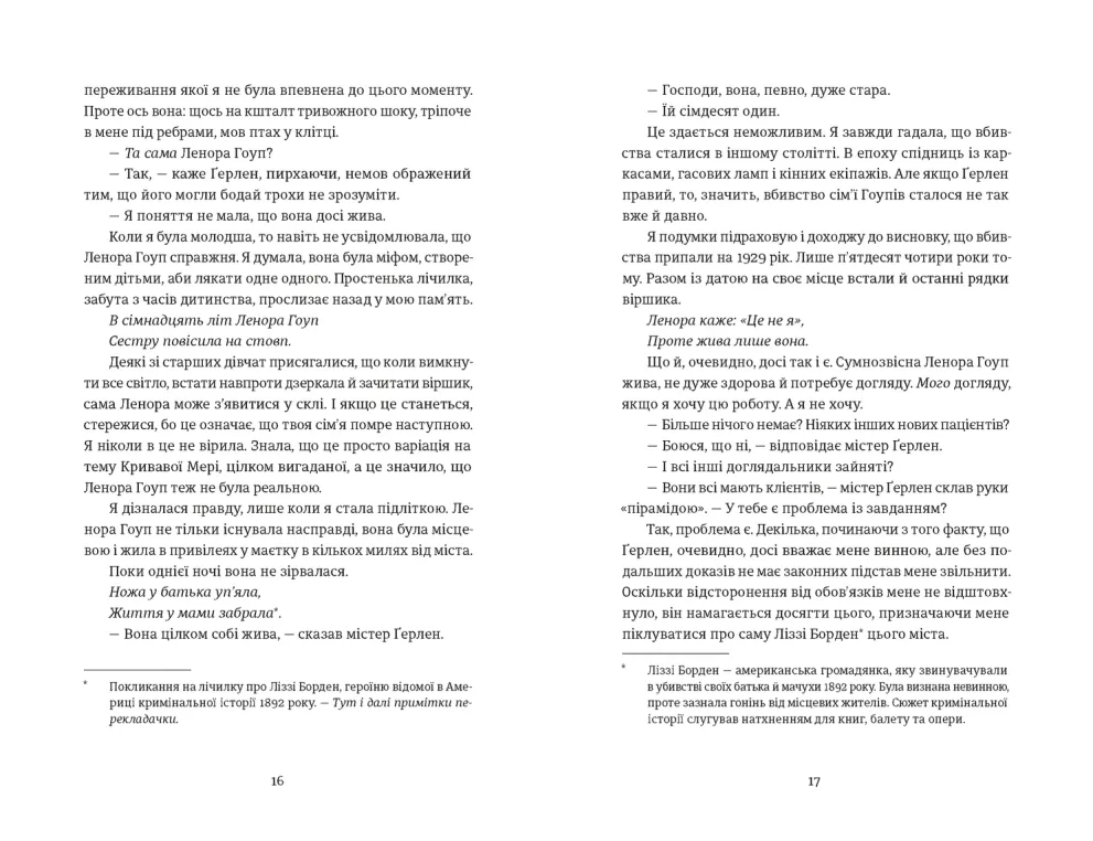 Велич і розкіш маєтку Гоупів у далекому минулому. Кілька десятиліть тому тут сталося потрійне вбивство, яке не розкрили за браком доказів. Ті страшні події обросли чутками та перетворилися на міські легенди. Ленора Гоуп, здається, єдина, хто знає правду. Однак розповісти її не може — жінку розбив параліч. Нова доглядальниця Ленори, потрапивши у моторошний маєток, опиняється у вирі старих таємниць. Дівчина не може зупинитися у пошуках відповідей, історія Ленори її одночасно і лякає, і манить. Та хіба вона могла подумати, що, розплутуючи родинну трагедію Гоупів, віч-на-віч зіткнеться із власними демонами?