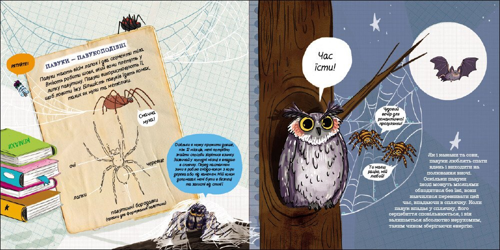 Окрім мурах, у виданні також йдеться про інші види комах, зокрема сонечок, павуків та жуків. Дітям буде цікаво дізнатися, як комахи допомагають одне одному виживати, які механізми захисту вони використовують та як комунікують між собою.