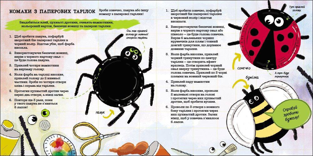 Книга містить кумедні й водночас інформативні ілюстрації, що роблять процес читання ще більш захопливим. Завдання, творчі вправи та прості наукові експерименти допомагають краще зрозуміти прочитане. Зокрема, діти можуть навчитися майструвати готель для комах або створювати їхні портрети.