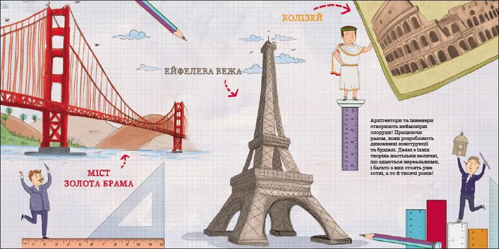 Книга Як не падають мости? авторки Шанд Дженніфер — це захоплююча подорож у світ інженерії та архітектури для дітей молодшого та середнього шкільного віку. Через доступну мову, цікаві факти й жваві ілюстрації діти дізнаються, як працюють інженерні конструкції, чому мости не падають під натиском автомобілів, як сучасні хмарочоси витримують силу вітру та які рішення залишили нам римляни у спадок.