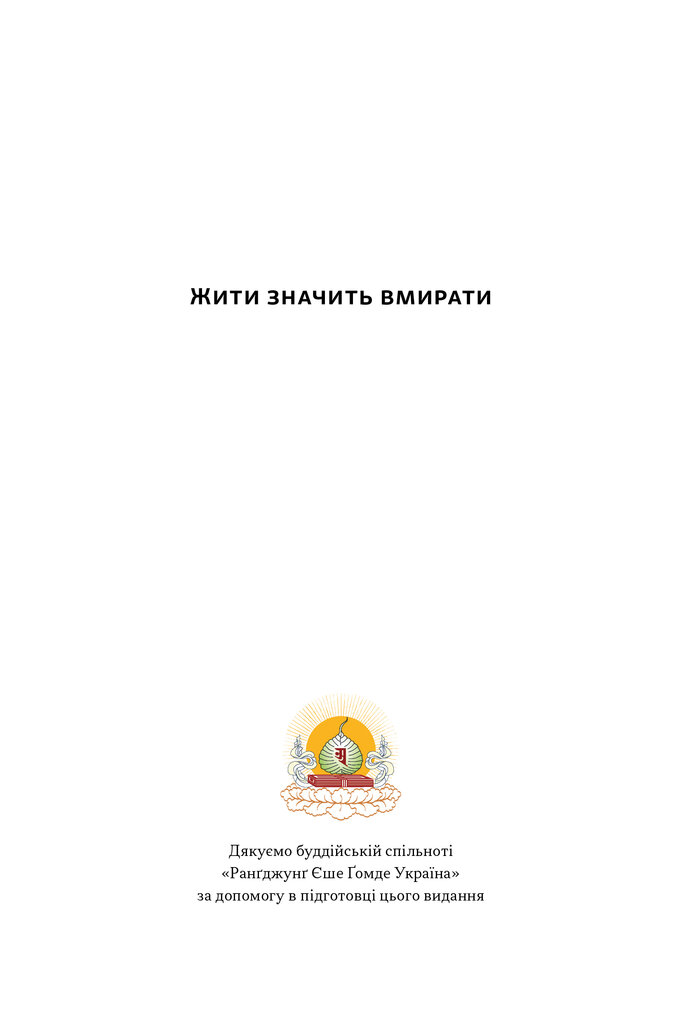Книжка зацікавить не тільки буддистів, а й тих, хто коли-небудь втрачав, боїться втратити або просто хоче знайти емоційну рівновагу і жити глибшим та наповненішим життям. Бо жити значить вмирати. Якщо прийняти це твердження, життя стає усвідомленішим