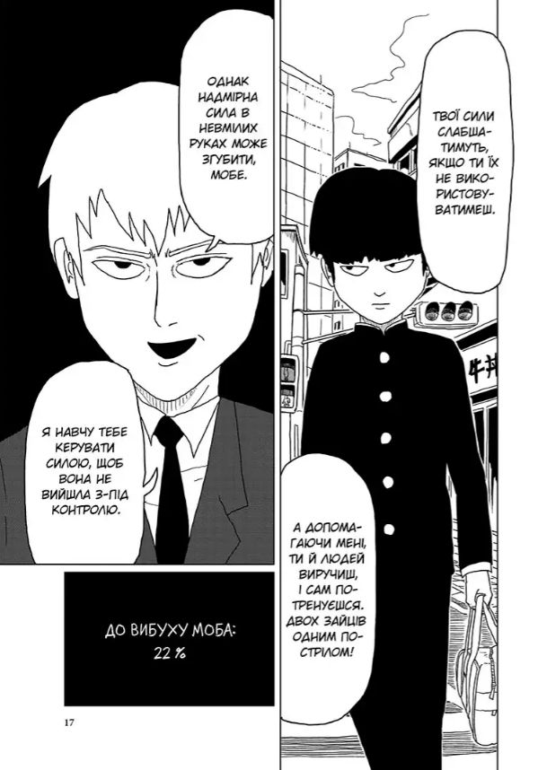 Моб настільки неймовірний, що має силу зруйнувати світ, але водночас не може зізнатися дівчині у симпатії. Що ж на нього чекає у майбутньому? І чи здатен він утримати свої емоції й протистояти містеріям, які наука не в змозі пояснити?
