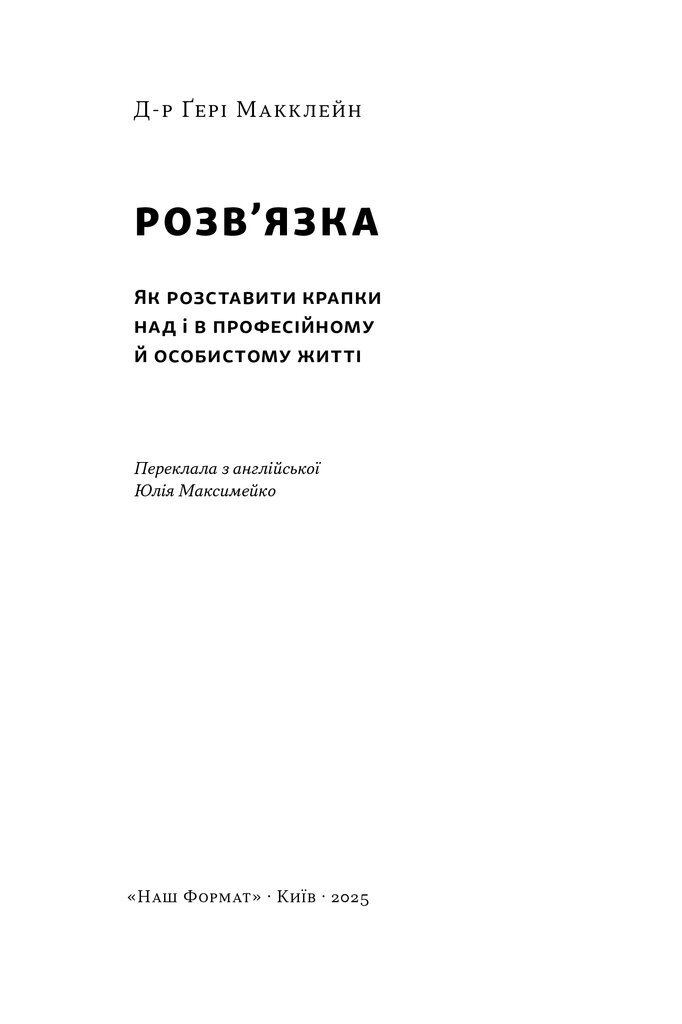 У своїй чуйній і проникливій книжці доктор Ґері Макклейн розповідає, як шукати порозуміння здоровими та продуктивними способами, а також як рухатися вперед, коли ми не отримуємо бажаного. Ви дізнаєтеся, як відчути примирення і залишити жаль позаду. Коли не можете припинити думати про сварку з другом або постійно прокручуєте в голові провал на роботі, коли ваш світ перевернувся догори дриґом через розрив стосунків або коли померла кохана людина, терапевтична «Розв’язка» допоможе вам відпустити минуле, перегорнути сторінку та прийняти, нарешті, майбутнє.