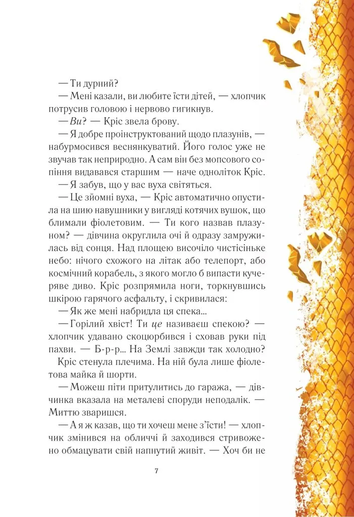 Головна героїня — допитлива десятирічна Кріс, справжня книжкова фанатка. Вона знає все про потраплянців і магічні історії, але навіть не підозрює, що зовсім скоро її життя зміниться назавжди. Хлопець з яйцем дракона падає на неї прямісінько з неба — і з цього моменту розпочинається справжня фентезійна пригода.