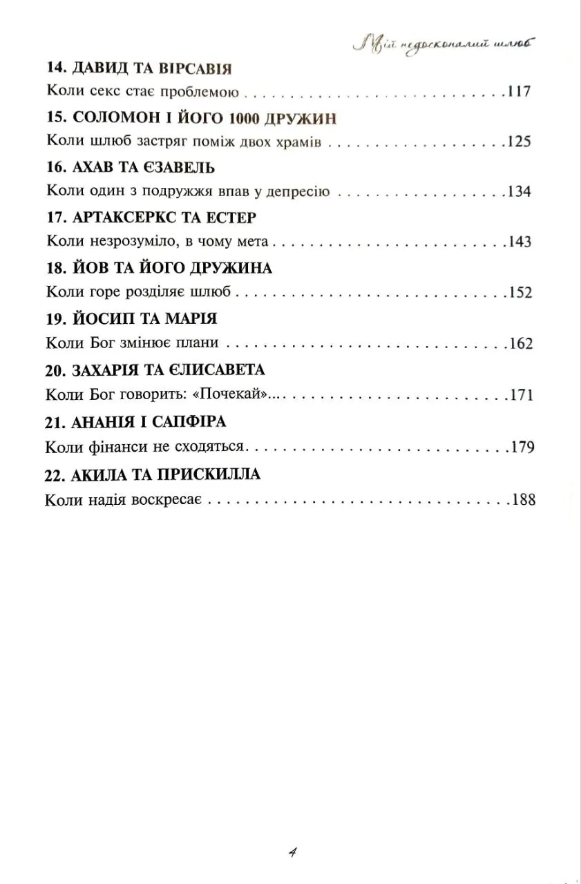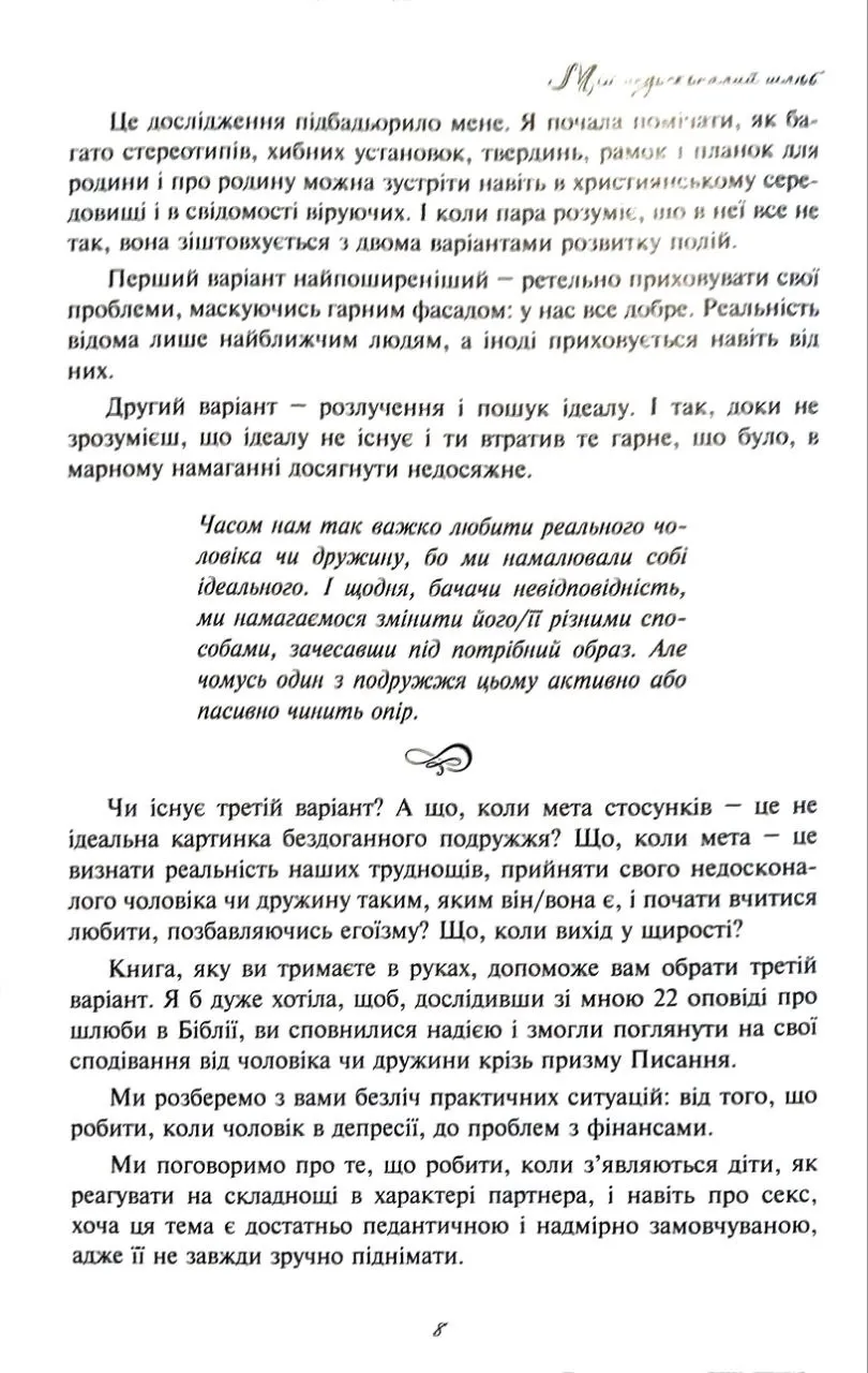 Я вірю, що 22 шлюби з Писання допоможуть нам з вами побачити, що мета – не в досконалості, а в тому, щоб навчитисяприймати, любити і допомагати своєму «недосконалому чоловікові». Ця книга – посібник для вивчення, ідеї для побачень, проект для сімейного служіння та допомога у хвилини розпачу.