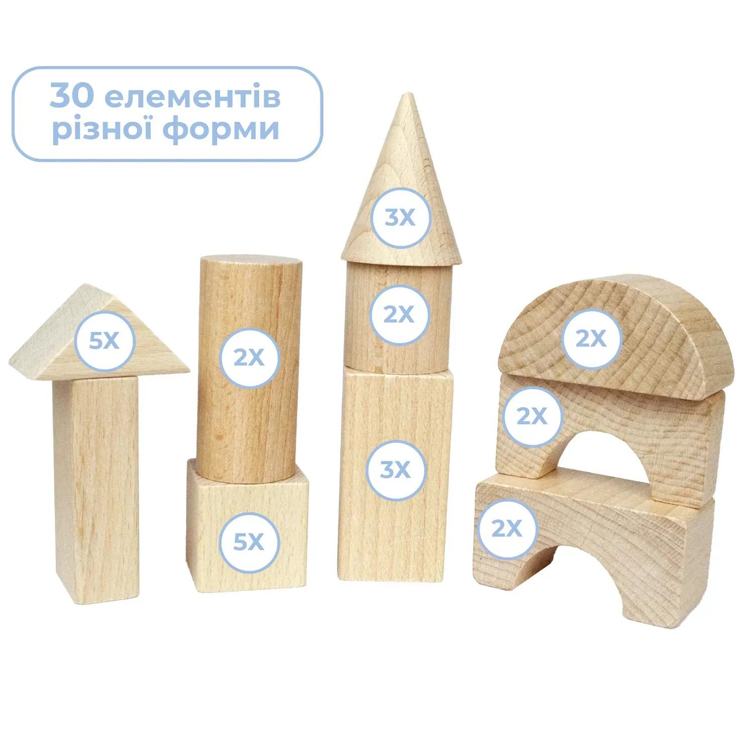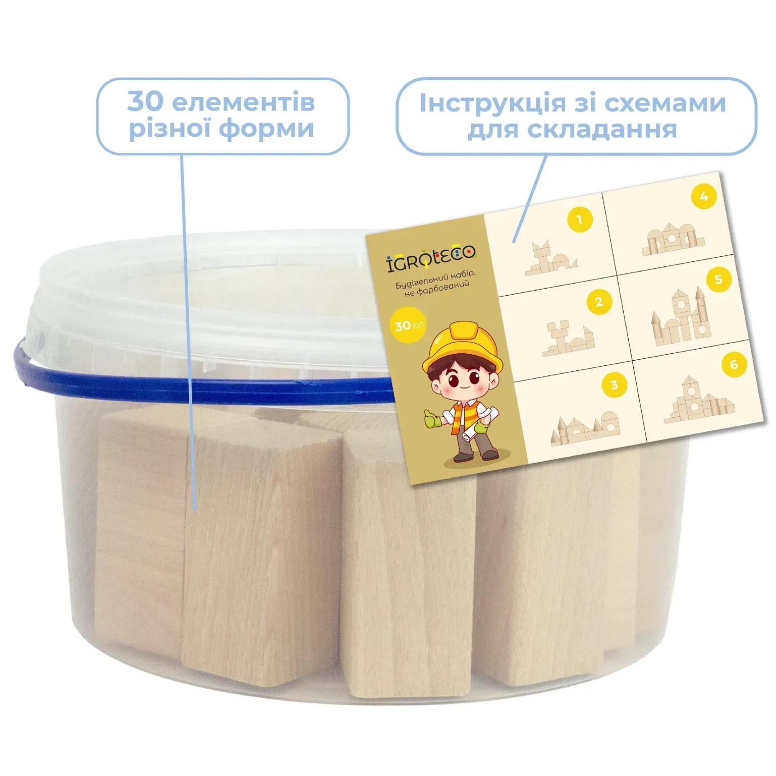 Будівельний набір IGROTECO не фарбований 30 елементів – натуральна деревʼяна розвиваюча іграшка