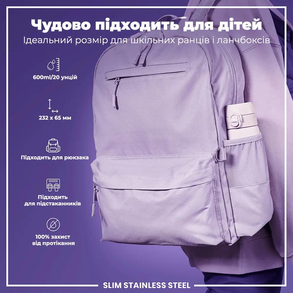 Пляшка для води металева ION8 600 мл Stainless Steel Lilac Dusk
