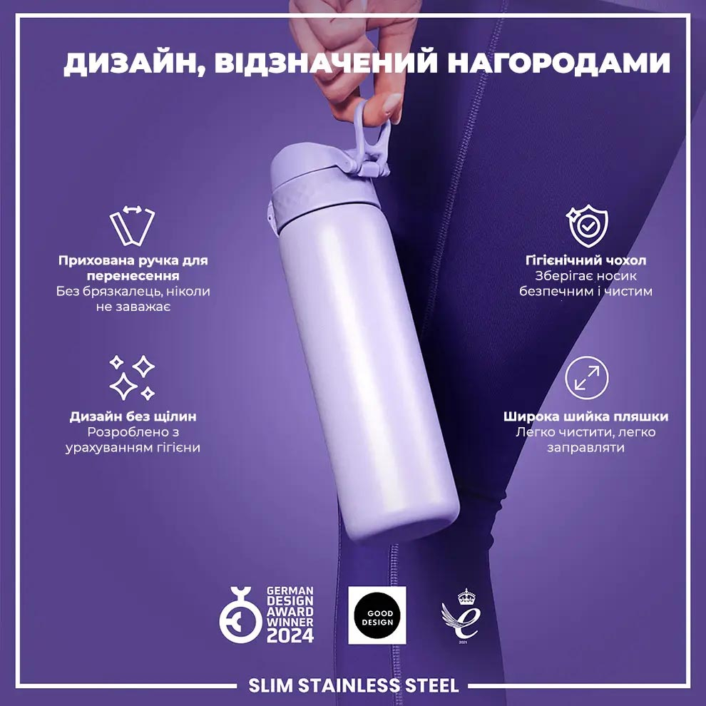 Колір Light Purple додає стилю, а гладке зовнішнє покриття приємне на дотик. Пляшка легко миється вручну звичайними засобами без абразивних компонентів.