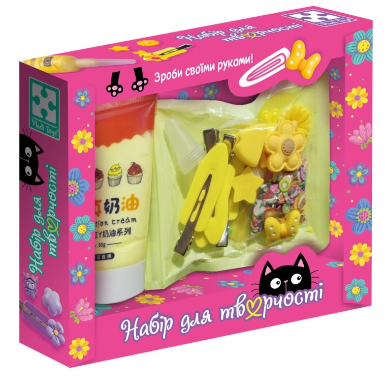 У світі дитячої фантазії можливо все — створити власні прикраси, стати феєю-дизайнером чи навіть маленькою принцесою, яка має власну чарівну скриньку. Набір для творчості Клей з кабашонами Заколки жовті від Vladi Toys дарує дітям таку можливість.